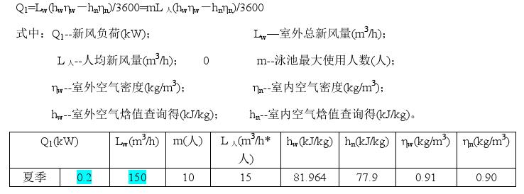 (1)夏季新風冷負荷計算: